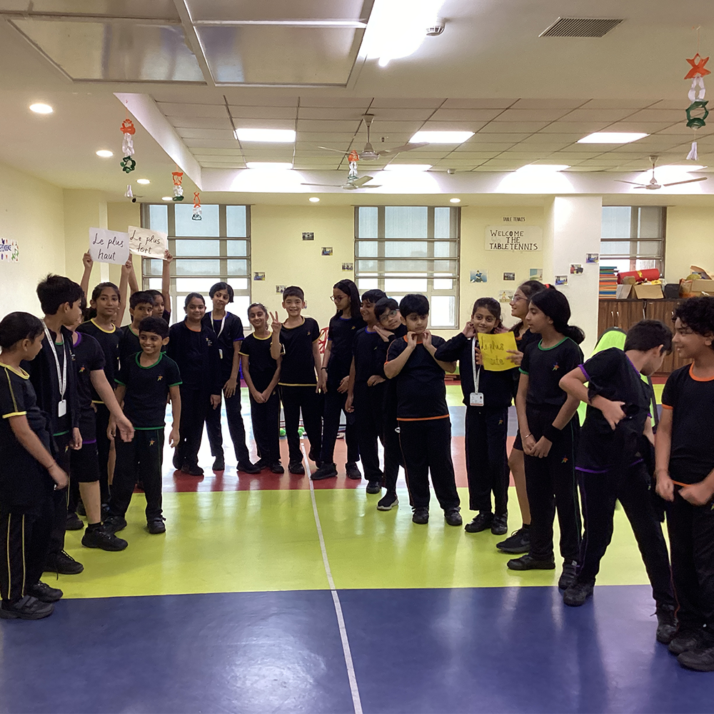 In our Grade 4 French classrooms, students engaged in lively discussions about the origins of the Olympics, the countries that participate, and the various sports featured in the Jeux Olympiques. To deepen their understanding and provide them with active learning opportunities, a collaborative event with the PE department was organized during the first week of September. This event was an engaging way to capture the spirit of the Olympics. It was held in the indoor PE room and featured a variety of adapted Olympic sports and activities, tailored to suit the students' age groups and skill levels. They participated in mini table tennis, hockey, and football, all while using French vocabulary to identify the sports.